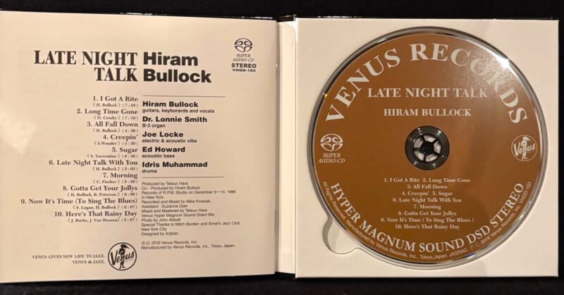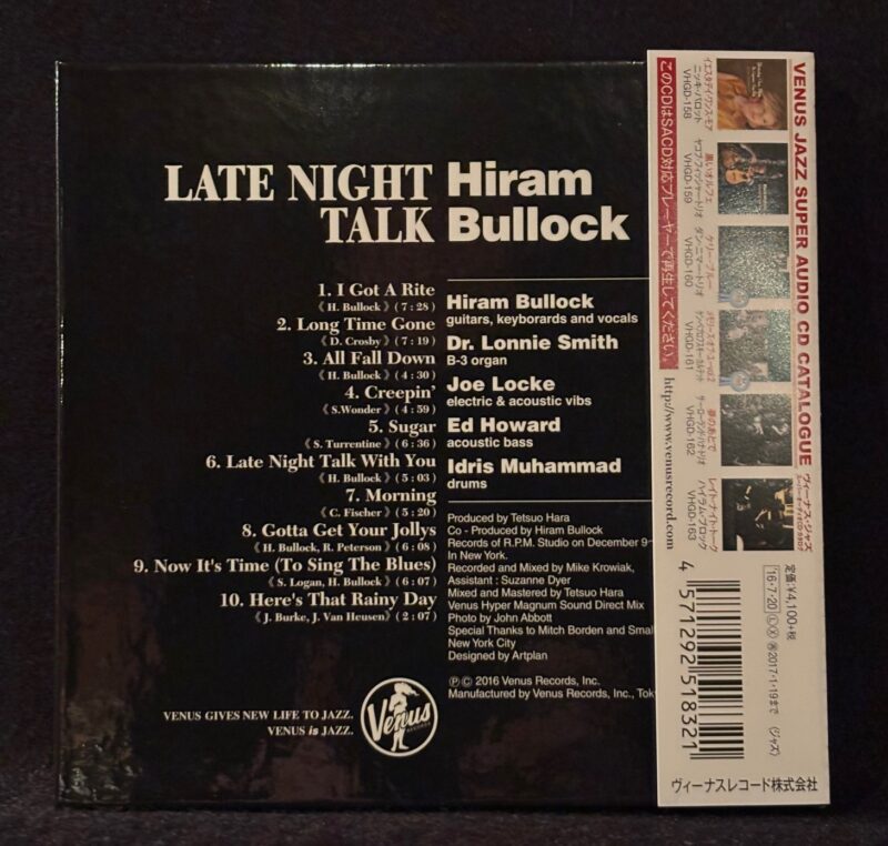 [ VHGD-163 ] SACD ニューミックスによる次元を超えた SACDジャズ・サウンド! ※本商品はSACD対応プレイヤー専用ディスクです。 通常のCDプレイヤーでは再生することはできません。 (ハイブリッド型ではありません) ハイラム・ブロック ( ギター、キーボード&ヴォーカルズ ) Dr. ロニー・スミス ( ハモンドオルガン ) ジョー・ロック- ヴァイブラフォン エド・ハワード ( アコースティックベース ) アイドリス・ムハマッド ( ドラム ) ///////////////////////////////////////////////////// ~ メーカーインフォメーションより ~ ニューヨークNo.1ギタリスト、ハイラムの最高傑作アルバム。 グルーヴィーでビューティフルなジャズ・ファンクが たまらなくかっこいい出来栄え! 聴く者を完全にノック・アウトする! /////////////////////////////////////////////////////// ヴィーナスレコードの人気シリーズが入荷しました。 他にも複数タイトルがございますので、いつでもお問い合わせ下さい。 ぜひこの機会にお問合せをお待ち致しております。 遠方にお住まいの方への発送も承っております。
